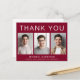 Modern 3 Photo Graduation Burgundy Thank You Postcard