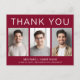 Modern burgundy red graduation thank you postcard featuring 3 photos of the graduate and "Thank You," the grad's name, school and class year in simple white typography. Personalise your thank you message on the back an add your name in a signature-like script.