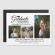 Modern white graduation party announcement magnetic card designed with a collage template for 3 of your favourite photos.