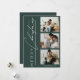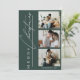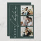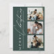 Modern 3 Photo Minimalist Green Christmas Script Holiday Card