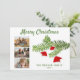 Modern 3 Photo Santa Hat Pine Merry Christmas Holiday Card