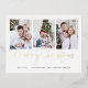 Modern 3 Photos Merry Christmas. The luxury of real foil in your choice of silver, gold, or rose gold, for Merry Christmas which is in a stylish set script on a convenient postcard. Simply replace the sample images and personalise with your names at the bottom and message on the back.