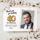 Elegant fortieth birthday party thank you cards featuring a simple white background that can be changed to any colour, a photo of the birthday girl / boy, gold sparkly glitter, forty gold hellium balloons, and a modern thank you template that is easy to personalise.