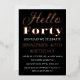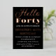 Hello Forty. Modern, QR Code, black and rose gold foil, stylish 40th birthday invitations. You can personalise it with your own details.