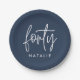 Modern 40th birthday simple stylish elegant script & geometric 40th birthday decor paper plates. Part of a collection. Navy blue colour can be changed.
