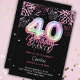 Modern 40th Pink Foil Balloon Fireworks Birthday Invitation