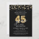 Modern 45 Year Class Reunion Black Gold Streamers Invitation
