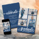 Add your favourite four photos to the front of these graduation party invitations featuring graduate and class of in chic lettering on a blue background. MORE designs and colours done in our store including invitations, save the date cards and postcards.