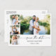 Modern Minimalist yet Elegant Calligraphy Ink Pen Script 4 Photo Wedding Engagement Announcement Save The Date Postcard