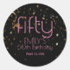 Modern 50th Birthday Black Background Gold Confetti Overlay Pink Text Round stickers
