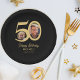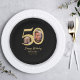 Trendy bold typography 50 years man birthday funny personalised party paper plates template with 2 photos and modern retro style script. Easy to customise with your text and pictures.