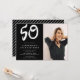 Trendy 50th Birthday Photo Invitation. Design features a photograph of your choice on a black background, with a white text simple template that is easy to customise. The number fifty is a fun a brush stroke typography giving this invite a modern feel.