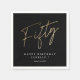 Modern minimalist 50th birthday party napkin features stylish faux gold foil number handwritten script Fifty and your party details in classic serif font on black background color, simple and elegant, great surprise adult milestone party decor for men and women. The black background color can be changed to any color of your choice.