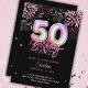 Modern 50th Pink Foil Balloon Fireworks Birthday Invitation