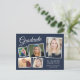 Modern dark blue graduation party postcard invitation featuring a 5 photo collage, "Graduate" in an elegant white script, and the grad's name, school and class year in simple white typography. Add your party details on the back.