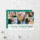 Contemporary christmas holiday card featuring a 5 photo collage of your beautiful family, the words "merry christmas" in a elegant green gradient typeface, your family name, and the year.