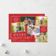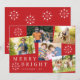 Modern 5 photo collage snowflakes red Christmas Holiday Card