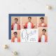 Add your favourite five photos to the front of these graduation announcements and party invitations featuring graduate in chic blue lettering in your school colour. More details on the back on your school colour background. Change the colours with our editing tools. MORE designs and colours done in our store including invitations, save the date cards and postcards.
