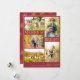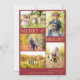 Simple stylish trendy five custom photos, chic typography, and gold copper snowflakes Merry & Bright red vertical holiday card template. Easy to personalise with your pictures and family name / text.