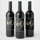Modern 60th Birthday Black & Gold Script wine label features stylish faux gold foil number in handwritten script. Simple and elegant, great surprise adult milestone birthday decor for men and women. The black background colour on the back can be changed to any colour of your choice.