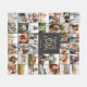 Modern minimal multi photo script 60th birthday fleece blanket gift. Ideal gift available for mums, dads, grand, grandad of any family member. Stunning elegant script text. Black, white and gold design.