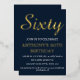 Modern, QR Code, navy blue and gold foil, stylish 60th birthday invitations. You can personalise it with your own details.