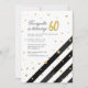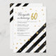 Send out the invitations for the upcoming milestone party with our Geometric 60th Birthday Glitter Black White Stripe Invitation. Featuring beautiful botanical watercolor bloom. Simply personalise with the party details by clicking the customise it button to further re-arrange and format the style and placement of the text.