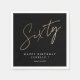 Modern 60th birthday simple stylish elegant party napkin features stylish faux gold foil number handwritten script Sixty and your party details in classic serif font on black background colour, simple and elegant, great surprise adult milestone party decor for men and women. The black background colour can be changed to any colour of your choice.