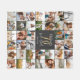 Modern minimal multi photo script 70th birthday fleece blanket gift. Ideal gift available for mums, dads, grand, grandad of any family member. Stunning elegant script text. Black, white and gold design.