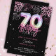 Celebrate a milestone birthday in style with our personalised 70th birthday invitation featuring iridescent pink foil balloon numbers! This elegant design showcases a black background adorned with a stunning overlay of pink shimmer fireworks and stars, making it the perfect choice for a festive and stylish celebration. The foil balloon numbers add a touch of luxury, while the script font adds a personalised and unique touch. This invitation is perfect for a 70th birthday party embracing a pink theme. Make her special day even more memorable with this colourful and sophisticated invitation!