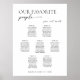 Modern Script Wedding Seating Plan. Our Favourite People sign. Personalised Simple Minimalist Seating Chart for 70 guests (7 tables). Just click the customise further link, shown under the text personalisation area on the right, and choose your custom colour background. This sign poster template makes it fast and easy to create stunning additions to your wedding decor. Signs can be enlarged, there are many sizes to choose from, as well as options for custom framing and matting.