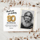 Elegant eightieth birthday party thank you cards featuring a simple white background that can be changed to any colour, a photo of the birthday girl / boy, gold sparkly glitter, eighty gold hellium balloons, and a modern thank you template that is easy to personalise.
