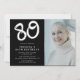 Trendy 80th Birthday Photo Invitation. Design features a photograph of your choice on a black background, with a white text simple template that is easy to customise. The number eighty is a fun a brush stroke typography giving this invite a modern feel.