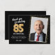 Elegant 85th birthday party thank you cards featuring a stylish black background that can be changed to any colour, a photo of the birthday girl / boy, gold sparkly glitter, eighty five gold hellium balloons, and a modern thank you template that is easy to personalise.