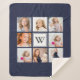 Modern 8 Family Photo Collage & Initial Letter Sherpa Blanket