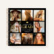 Simple graduation school leavers book featuring a stylish black background that can be changed to any colour, 8 photo collage of the graduate, a mortarboard cap, the saying "congrats grad", their name, high school, and class year.