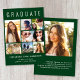 Elegant green graduation announcement featuring "GRADUATE" across the top in large white typography, a seven photo collage and his or her name, class year and school in modern white typography. On the back, add an additional picture and a personalised message.