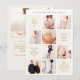 The front features a striking 12-square grid layout, offering a dynamic mix of eight photo slots and four dedicated text blocks. This balanced design allows you to showcase the couple’s journey, from the first date to the proposal, while keeping the essential party details clean and readable. It’s a fun, contemporary way to build excitement before the celebration even begins.