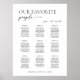 Modern Script Wedding Seating Plan. Our Favourite People sign. Personalised Simple Minimalist Seating Chart for 90 guests (9 tables). Just click the customise further link, shown under the text personalisation area on the right, and choose your custom colour background. This sign poster template makes it fast and easy to create stunning additions to your wedding decor. Signs can be enlarged, there are many sizes to choose from, as well as options for custom framing and matting.