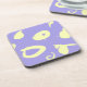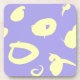 This modern acrilic coaster is designed with whitish yellow spots and graphic gestures over a plain vibrant lavander background.