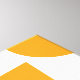 Modern art piece of geometric shapes. Made up of circles and rectangles in blue, orange and red on a white background.