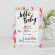 Hello baby bright, modern, cheerful and artistic expressive its a boy baby shower invitation. Soft and vibrant colour pallet of blues, pinks and yellows are used to create a cheerful and inviting baby shower invitation design. Our bold ,modern, colourful stokes and shapes creates a cheery and colourful baby shower invitation. The back of the invitation is designed with a bold, modern black and white stoke pattern print, that perfectly contrast with the bold and colour frontside of the baby shower invitation. All illustrations contained in this modern abstract colourful abstract baby shower invitation are hand-drawn original artwork by Moodthology. You can customise the text size, text colour, font and layout for your own personal design preference.