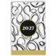 Stay organized in style with this modern abstract 2027 wall calendar featuring elegant, flowing brushstroke loops in charcoal gray on a crisp white background. A bold black circle with metallic gold accents adds a touch of contemporary sophistication, making this calendar both functional and decorative.