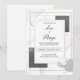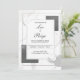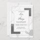 Make a striking, contemporary statement with this modern abstract wedding invitation. The entire background is dominated by a stunning white marble texture with subtle grey and faint pink veining, setting an immediate tone of luxury and refined elegance. The design features a dynamic collage of layered geometric shapes and lines. A thin silver or light grey rectangular frame sits centrally, defining the main white text area. This central element is overlaid upon and accented by shapes that include textured dark charcoal grey rectangles with a subtle shimmer, circles showcasing the continuation of the marble pattern, and graphic elements like black and white stripes and diagonal lines. The overall style is modern, minimalist, and architecturally inspired, perfectly suited for couples planning an urban city wedding, a sleek gallery reception, or any event emphasizing structured elegance, high contrast, and contemporary design. This design is perfect for modern wedding invitations, minimalist engagement party announcements, formal black tie event invites, or sophisticated gallery opening stationery. The luxurious marble and geometric structure are also ideal for upscale interior design announcements or high-end corporate event invitations.
