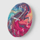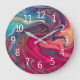 Modern Abstract Blue and Red Liquid Marble Artwork Large Clock