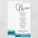 This wedding suite of designs features a bold, abstract watercolor accent. The paint colours I used are a range of blue, green, turquoise, aqua and teal hues. Not only would this design be ideal for someone celebrating in a casual manner or planning a beach wedding but it was also designed with the artistic, creative couple who walks a bit off the beaten path. Key phrases are rendered as elegant typography graphic accents using a gorgeous script font. In this case the "fancy type" reads "Menu". Use the template fields to easily add your own details. Check out the matching designs for your wedding and event planning needs and please do not hesitate to contact me for special requests and assistance with customisation. // 32 //