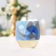Modern Abstract Blue Grey Fractal Art Graphic Stemless Wine Glass