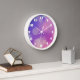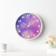 This modern round wall clock features an abstract bokeh design on a blue, purple, and pink gradient background with bold white numerals.