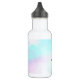 Water bottle with a modern abstract watercolor design. Blue and purple colours mix and mingle together in a soft pastel coloured abstract pattern.
