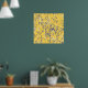 Modern Abstract Blue Wildflowers on Mustard Yellow Poster